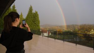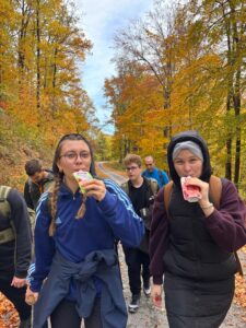 Prvi dan je započeo, naravno, sa svih sedam sati redovne nastave koje smo brzo zaboravili na putu za Đulovac preko jesenskim bojama okupanog Papuka. Ni uporna kiša, koja je napokon napunila korita papučkih potoka i rijeke Orljave, nije nas uspjela obeshrabriti ili oneraspoložiti, dapače, duga koja nas je dočekala nad Đulovcem, a koja je simbolično označila novi savez između starih i mladih, ohrabrila nas je i najavila nam je jedno prekrasno druženje i uspješno planinarenje.