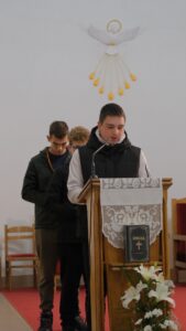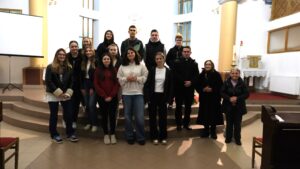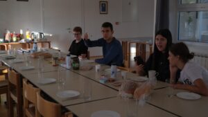 Po dolasku u centar razmjestili smo se u sobe, rasporedili zaduženja, obavili kupovinu i pripremili večeru (Viktorija i Petra) nakon koje smo u župnoj crkvi Duha Svetoga proslavili svetu misu koju je predvodio naš Marko. Po povratku u centar odigrali smo kviz koji su pripremili maturanti 4.b razreda. Pobjednike nećemo isticati, ali možemo reći da su svi sudionici nagrađeni slasnim palačinkama koje je, za vrijeme kviza, nesebično pripremila naša Viktorija.