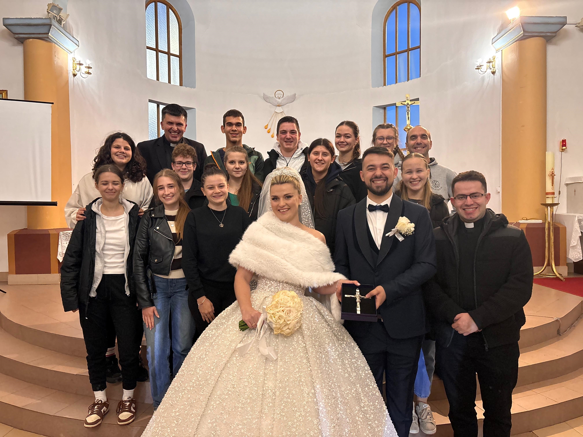 Naime, onih palačinki od prethodne večeri ne bi bilo da nije bilo dobrote mladog para koji se te subote vjenčavao. Palačinki bez jaja nema, jaja nismo ponijeli, u trgovini ih nije bilo, u selu sve pozaspalo osim budućih mladenaca koji su bili na pripravi u župnoj crkvi sa župnikom Žarkom. Čuvši za našu muku, mladoženja Jozo ekspresno je riješio svih deset jaja za naše palačinke, a mi smo mu se odužili tako što smo ih došli podržati na njihovu vjenčanju koje smo im obogatili sviranjem (Viktoria!) i pjesmom. Radost je bila obostrana pa smo se u takvom raspoloženju i rastali i od mladenaca Renate i Joze i od župnika Žarka kao i od Đulovca.