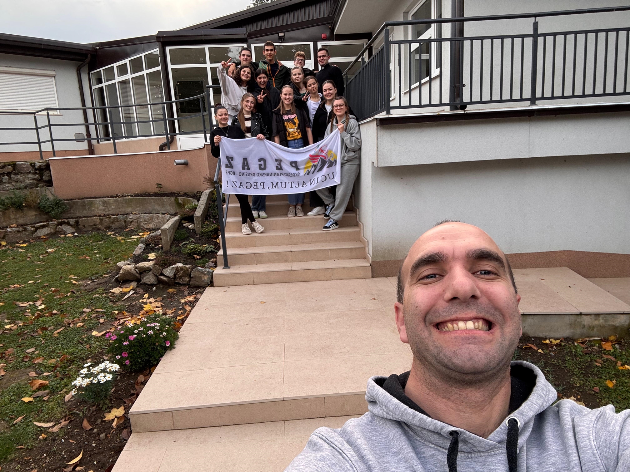 Obilna kiša koja je padala prethodna dva dana promijenila je naš prvotni plan da osvojimo vrh Skoblar tako da smo s našim domaćinima i vodičima, bratom i sestrom Ivanom i Martinom, i Ivanovim psom Alfom, dogovorili sigurniju, daruvarsku varijantu – od Vranjevine do