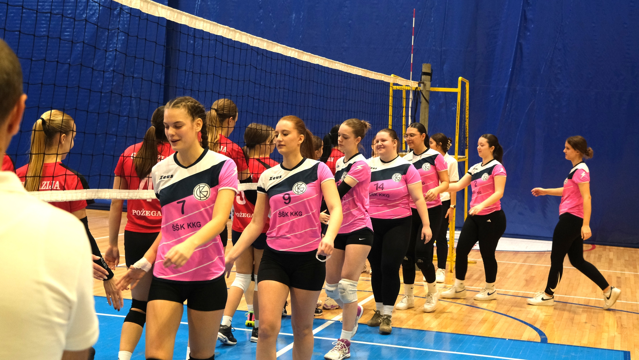 Nakon mjesec i pol dana upoznavanja i redovitog treniranja formirala se ekipa od deset djevojaka koje su branile boje KG-a na Županijskom natjecanju iz odbojke. Ana (C), Ema, Petra, Hana, Petra, Lucija, Petra, Marta, Lucija i Marta, pod vodstvom prof. Miroslava Paulića, postigle su izvrstan napredak u školskoj amaterskoj odbojci, no to, nažalost, nije bilo ni blizu dovoljno u srazu s dvjema najboljim ekipama ove (a i prijašnjih) godine koje su se jučer predstavile izvrsnom i lijepom klupskom odbojkom.