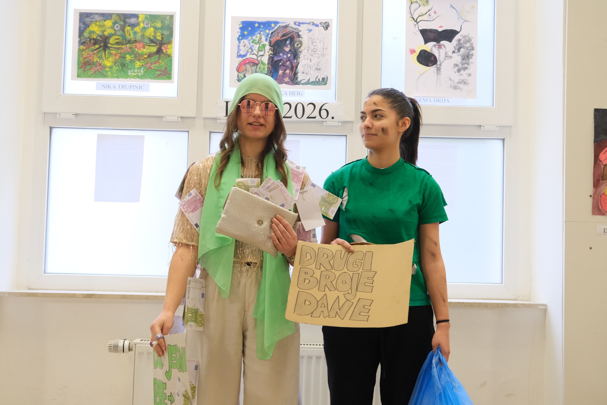 Ove godine u našoj školi maškare su bile malo drugačije u odnosu na prethodne godine. Ove smo se godine odlučili ocjenjivati pojedinačne maske tako da se svaki učenik mogao maskirati u ono što on želi. Tražili smo masku koja će odgovarati sljedećim parametrima ocjenjivanja: originalna ideja (nije klasična i već viđena), jasnoća izričaja (prepoznatljivost onoga što se želi prikazati), zanimljivi detalji (ručno rađeni ukras, posebna šminka, simbolika) pametna ili duhovita poruka (potiče na razmišljanje, nasmijava ljude, govori o nekom problemu).