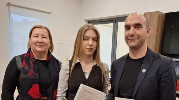 Posebno smo ponosni na uspjeh naše učenice 1.b razreda Rebeke Šipura, koja je osvojila treću nagradu u kategoriji srednjih škola, uz mentorstvo profesora Miroslava Paulić. Na ovogodišnjem natječaju sudjelovalo je još četvero naših učenika – Borna Krip (1.a), Matilda Vilus (1.a), Tena Katušić (1.a) te Ivona Drabik, učenica 2.b razreda.
