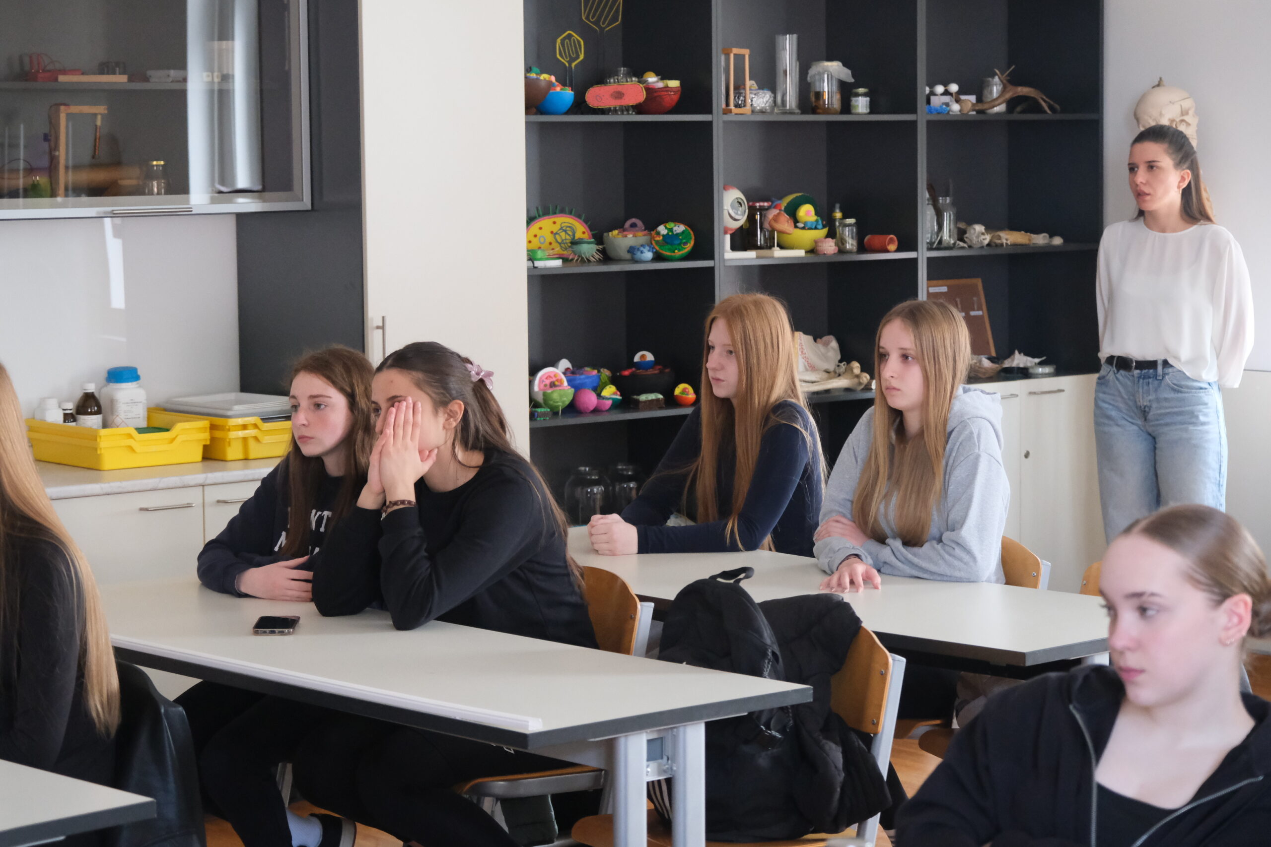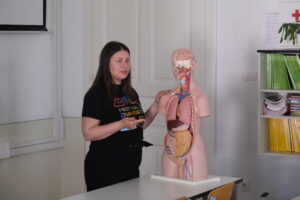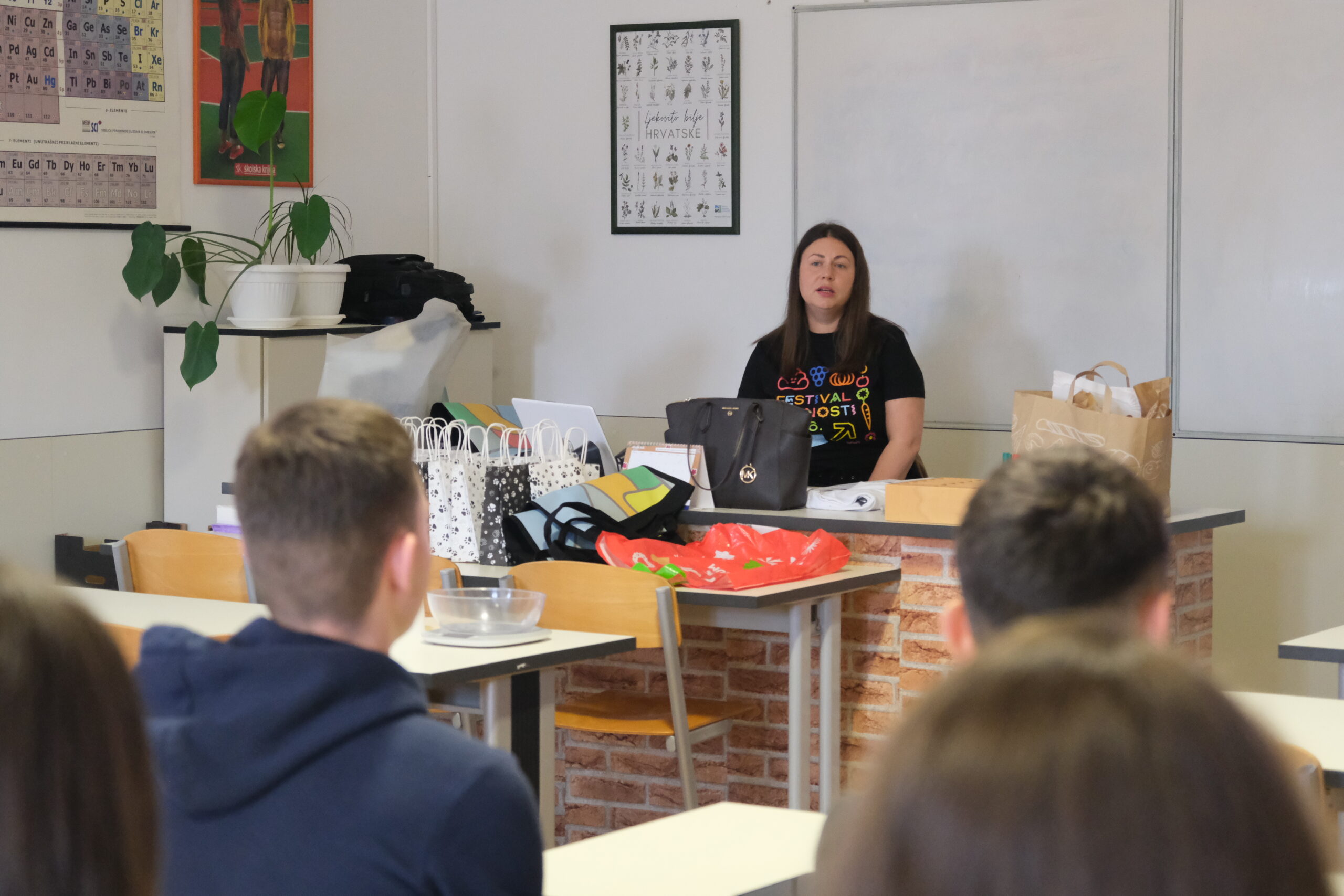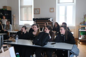 Učenici 3. b i 2. b razreda gimnazije aktivno su sudjelovali u predavanju, tijekom kojeg su imali priliku povezati teorijska znanja s praktičnim primjerima. Poseban naglasak stavljen je na razumijevanje procesa probave i apsorpcije hranjivih tvari, kao i na važnost uravnotežene prehrane za očuvanje zdravlja.